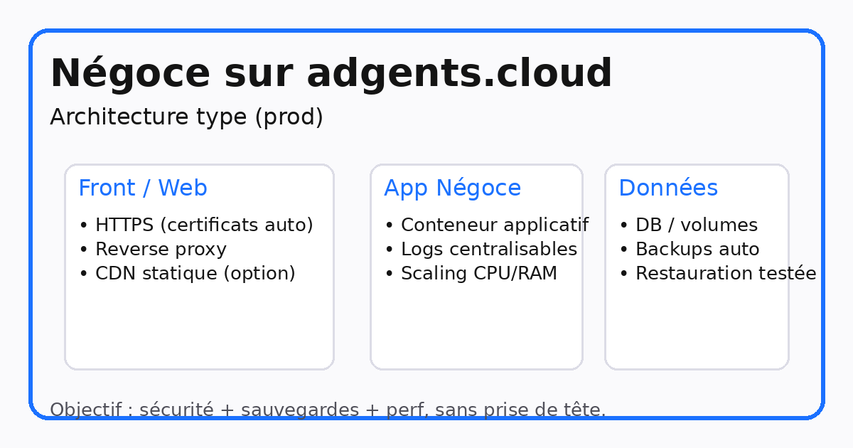 Négoce : déployer sur adgents.cloud (HTTPS, sauvegardes, perf) — guide 2026